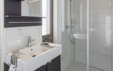 Sanitär: Die Unterkunft verfügt über ein Bad mit Dusche, Waschbecken und Toilette.