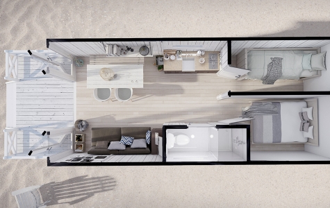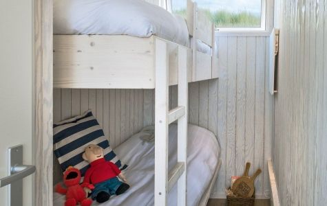 Schlafzimmer: Im Schlafzimmer 1 befindet sich ein Doppelbett. Im Schlafzimmer 2 steht ein Etagenbett, bei dem man das untere Bett für einen zusätzlichen Schlafplatz ausklappen kann. In einigen Strandhäusern ist das Wohnzimmer mit einer Schlafcouch ausgestattet.